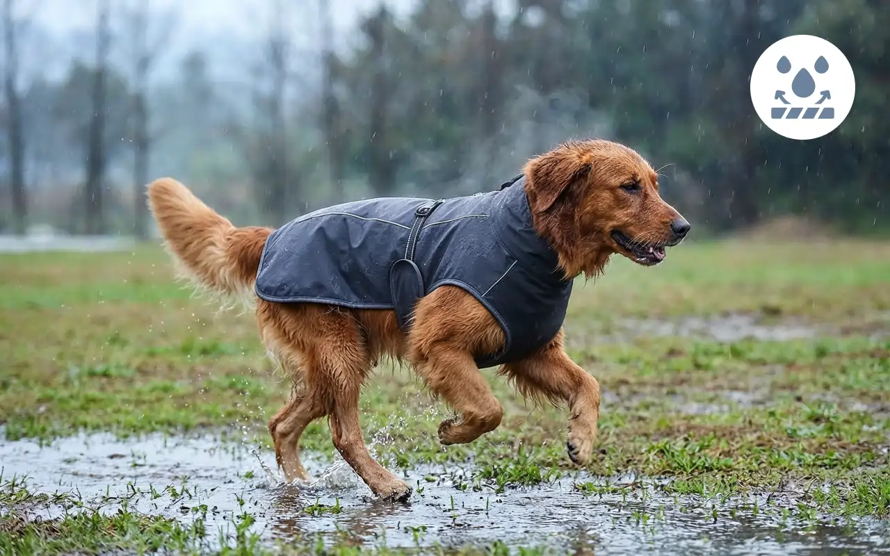 Stoffer hindrer vann i å trenge gjennom etter regn eller snø. Hunder holder seg tørre, glade og klare for moro overalt.
