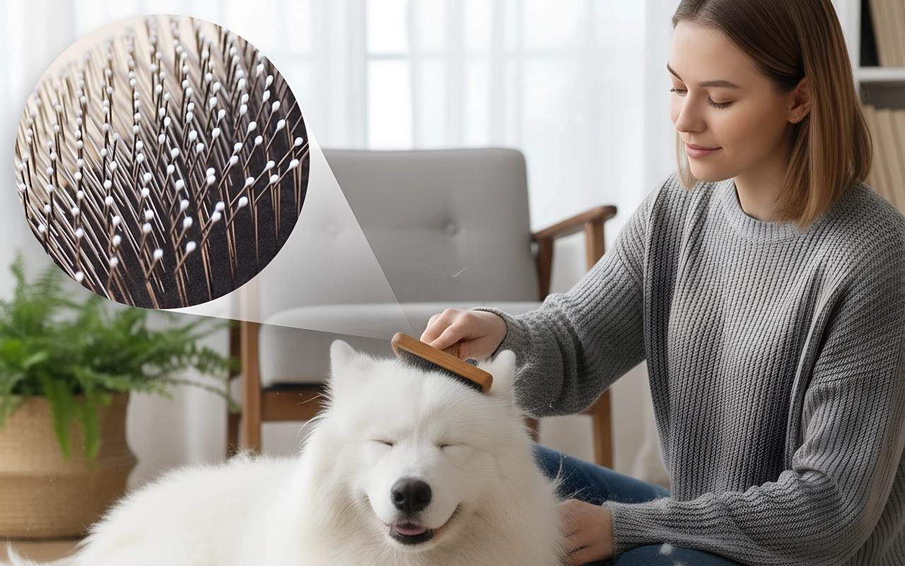 Runde tupper beskytter følsom hud mens løs pels fjernes. Kjæledyr nyter milde strøk uten riper eller ubehag.